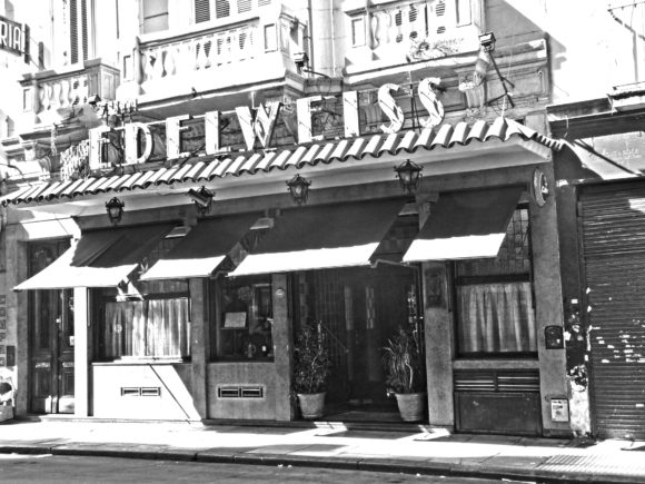 En la calle Libertad entre Lavalle y Corrientes ya no hay cambalaches y ropavejerías como hace cien años. Hoy hay joyerías, negocios de compraventa de oro, de artículos de video y electrónica (muchos de ellos robados), que también reflejan una época. Todo ha cambiado. Lo extrañamente inalterable es Edelweiss: la noble sabiduría o el refugio de los artistas y soñadores. No ha cambiado el excelente sabor de su cocina: el choucronte garnier, el goulash a la húngara con ñoquis de espinaca, el medallón de lomo a la pimienta con papas a la crema, y tantos otros platos. No ha cambiado el ambiente distendido logrado entre la boisserie oscura de la barra, las sillas vienesas, el salón de techo alto, las arañas de luz y los reservados marcados por pilastras con jarrones de cobre y helechos. El agradecimiento de los clientes consta en cinco gruesos libros de visitas. Entre dibujos, poemas, dedicatorias y pentagramas firman: Oliverio Girondo, Marcel Marceau, Norma Aleandro, Atahualpa Yupanqui, Quino, María Callas, Astor Piazzolla, Enrique Pinti, Maurice Bejart, Fontanarrosa, Alfredo Alcón, Charles Aznavour, Ernesto Sábato, María Elena Walsh, Charly García, Marco Denevi, José Sacristán, Hugo Beccacece, Landrú, Placido Domingo, Susana Rinaldi, Tato Bores, Joaquín Sabina, Federico Peralta Ramos, Mercedes Sosa, Alberto Olmedo, Oscar Araiz, sólo por nombrar unos pocos. Tal vez la razón del agradecimiento sea haber provocado un estado de ánimo especial, dicho en palabras del escritor Mujica Lainez: “Este es uno de los sitios de Buenos Aires donde he sentido más próxima la misteriosa felicidad”.