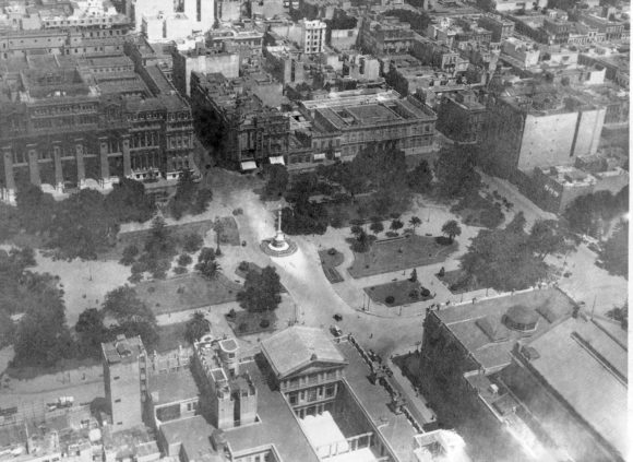 En 1908 se inaugura el Teatro Colón y en 1910 el Palacio de Justicia. La zona cambia de carácter pero guarda su historia. 1915. En la calle Libertad entre Lavalle y Corrientes, antes ocupada por casas de tolerancia, hay como curiosa derivación una serie de cambalaches y ropavejerías de compraventa donde conviven polainas con peinetas, abanicos con sables, fonógrafos con ponchos, juegos de cubiertos con rebenques, bacinillas con gorras militares, samovares con tabas, una mesa de billar con un cuero curtido, y demás enseres, que configuran a su manera la intrincada historia del lugar. 1920. La zona está marcada de día por la actividad comercial y de los tribunales, y de noche, con el Teatro Colón y la calle Corrientes, es espectáculo y bohemia. Nace El Centro. 1930. Hacen falta espacios para el tránsito. Se demuele la mitad de la manzana de Libertad-Corrientes-Cerrito-Lavalle, precisamente la porción que da a Cerrito y Lavalle, para construir la Diagonal Norte.