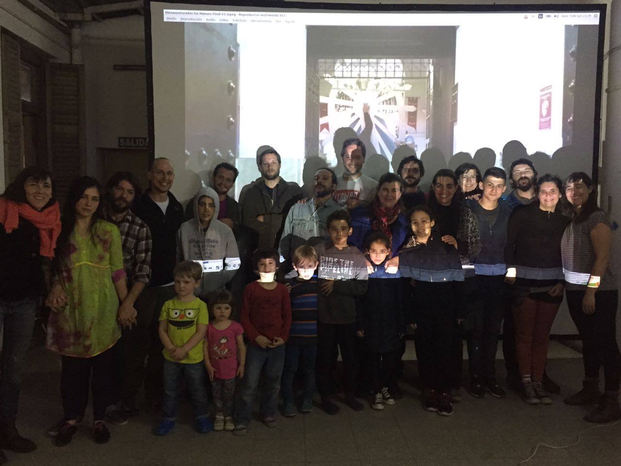 La invitación, hecha por la Asamblea Parque Lezama, incluía la participación de dos grupos musicales: “El Caso” (liderado por Juan Pablo Martini) y “Varias Bandas a la Vez” (liderado por Nahuel Prado), que sorprendieron ambos por la calidad, por el arreglo de voces, en “Varias Bandas a la Vez”, y por la estructura tímbrica: teclados, cello, contrabajo y percusión, en “El Caso”. Luego hubo un sonido de tambores acercándose desde lejos, sonando cada vez más fuerte, y ocurrió en el anfiteatro (calles Brasil y Balcarce) el final de La Llamada del Candombe. De manera que, después de los grupos musicales, de la rítmica de tambores negros y de docenas de danzantes y seguidores que toman la calle en un ritual pagano para convocar una reunión (eso es La Llamada), empieza la reunión, el asunto que nos trae, es decir, la proyección de la película.