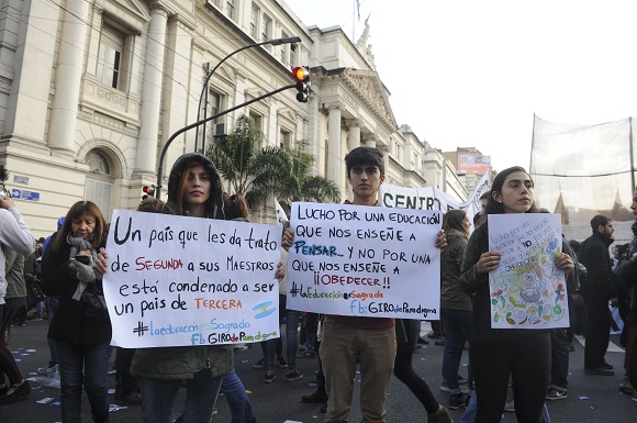 Es lunes 25 de abril. Los gremios que nos representan convocan a un nuevo paro, esta vez, toda la semana. Silvia se sienta cerca, es más grande que yo y estudia Psicología. Karina también. Y Valentina. Y el chico de anteojos. Y Leandro. Y Matías. Y Lucio. Y todos proponen: saquemos el aula a la calle. “Miren que estamos medio solos, les digo. No se imaginen que vamos a ir a hacer la revolución”. Se ríen. Uno se anima a una carcajada. La soledad de los docentes a cargo de los cursos es notoria. Los titulares brillan por su ausencia. Ostentan sus nombres en la carátula de los apuntes que los chicos leen. Jamás pisan el aula. Si lo hicieron en otra época, vale. Pero éste es su tiempo también, y no están, los alumnos nos los ven. Nos sentamos en el pasto, frente al Ministerio de Educación. Somos unos treinta en total. Hay una movilización y la acompañamos desde el suelo, hablando del parcial que tomaremos en estado de emergencia. Se acerca alguien del gremio y nos saca una foto. “¿Clase pública, profe?”. “Una clase normal”, contesto. ¿O no es la historia de este país otra cosa que un relato de mitologías, una crónica de lo real-maravilloso? No hay paredes ni aulas ni relojes, ni siquiera imaginarios. Los manifestantes, del CBC, de Exactas, del Buenos Aires y del Pellegrini se van diluyendo por Rodríguez Peña, por Córdoba y hacia Callao. No hay bancos, ni pizarrones ni sillas. Nos expulsa un Gobierno que criminaliza a los docentes en su derecho a protestar, sí, pero también nos expulsan jerarcas académicos, consejeros superiores, autómatas de la docencia, que tejen desde algún lugar inhallable sus propios pedestales. Fin de la cuarta clase.