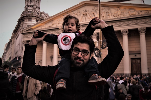 A las 18.30 hs. se escucha la canción de León Gieco: “Todo está guardado en la memoria / Sueño de la vida y de la historia”. Llega más gente. Los ríos son más lentos. “Somos 500.000 desde el Congreso hasta la Plaza de Mayo”, anuncia una locutora. Los cuerpos fluyen, detienen, contienen, incomodan, pero no dejan de ser personas, hay solidaridad, identificación, afecto, y se cuida a los niños, a los abuelos y a los distraídos, ¡cuidado con el escalón!, ¡con ese cordón!, ¡vayan despacio porque hay una valla!
