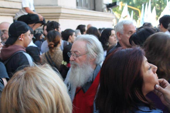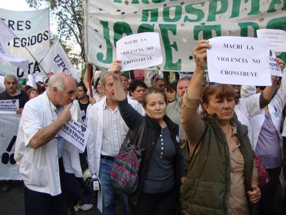 «Por la defensa del hospital público», fue una de las consignas del acto, en la que coincidieron los manifestantes quienes indicaron que «ese fue el motivo por el que iniciaron los procesos que hoy van a juicio oral, sin fecha aún, mientras los responsables de la represión están absueltos», aseguró por su parte Daniel Catalano, secretario de la Asociación de Trabajadores del Estado (ATE Capital), uno de los procesados.