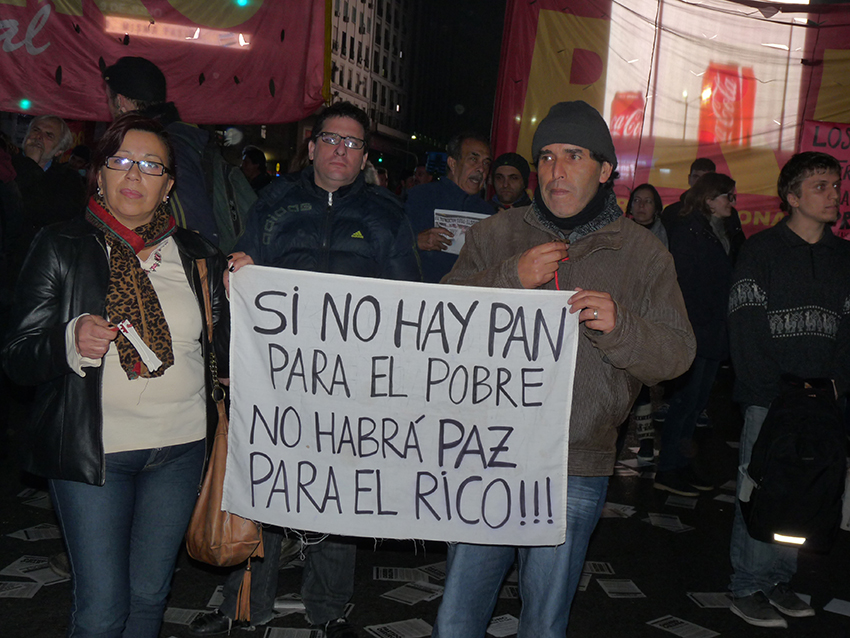 “Si no hay pan para el pobre. No habrá paz para el rico” se leía en uno de los carteles escrito a mano que fue blanco de los fotógrafos por lo contundente de la sentencia.