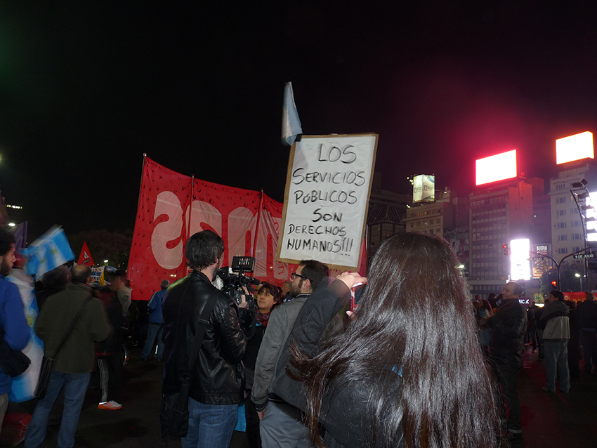En el barrio San Nicolás el epicentro fue Obelisco porteño, en menos de una hora se vio colmado de manifestantes que hicieron oír su protesta en contra del excesivo aumento de las tarifas de los servicios de agua, gas y electricidad. Sobre la avenida Corrientes estacionaron un centenar de taxis que reclamaban por un subsidio a Gas Natural Comprimido. El aumento de este insumo les encarece el costo del servicio.
