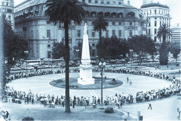 La Plaza vio y ve pasar a las madres que buscan a sus hijos e hijas, se manchó con sangre en represiones varias. El Cabildo está ahí para recordarnos la profundidad de los significados, cuando todavía el lugar estaba rodeado por una recova, y era mercado, teatro, plaza de toros y plaza de armas, según las necesidades del momento.