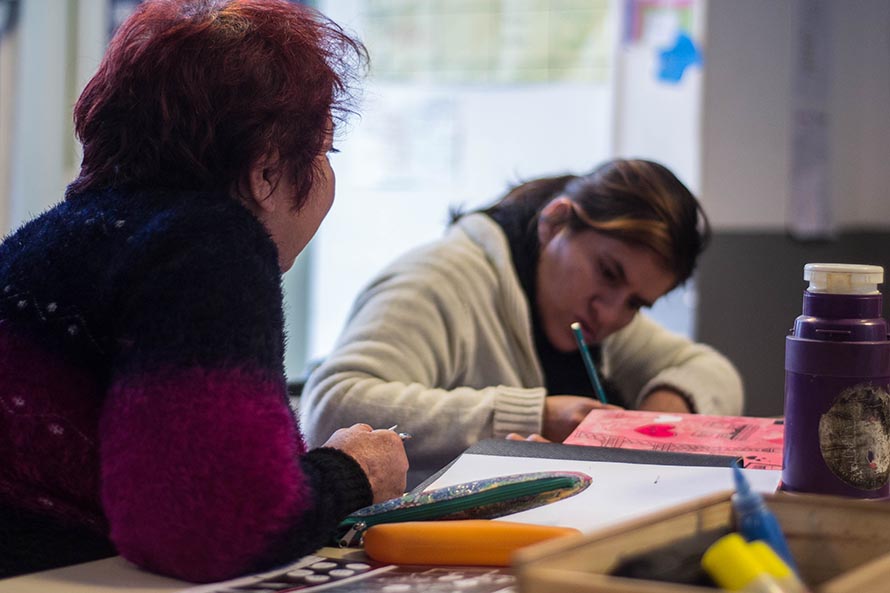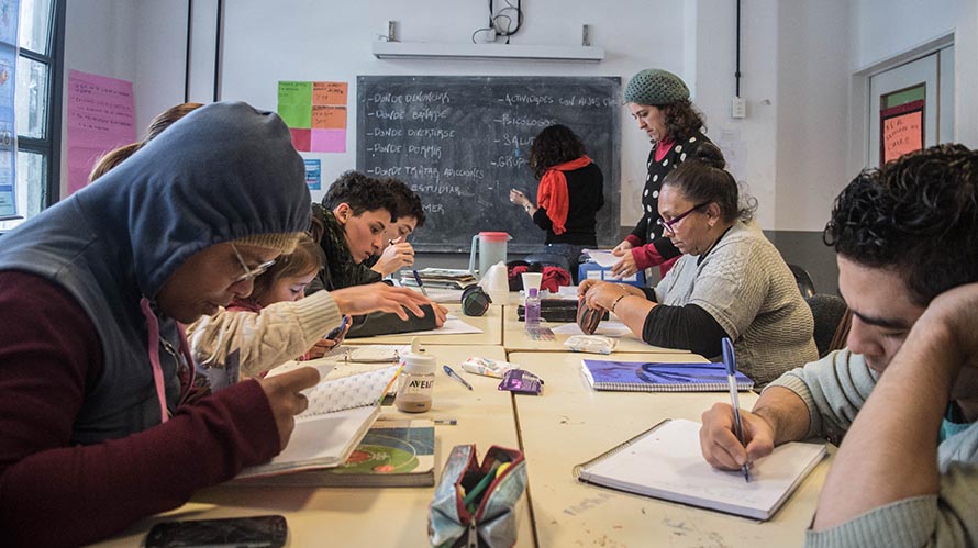 Martina y Vicky me reciben con un abrazo y me conducen hasta el aula. Alrededor de una mesa larga, llena de papeles y útiles escolares, alumnos y alumnas, adolescentes, y adultos, debaten, entre mate y mate, sobre género y piropos. Una consigna propuesta la clase anterior.