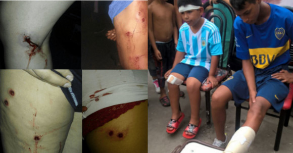 El denunciante explicó que no terminó de decir esa frase y el gendarme lo empujó y lo hizo caer y cuando su hijo de 14 años se acercó a ayudarlo, vio que otro le apuntaba y lo corrió de un empujón. “Cuando me corre, le dan a mi hijo un impacto de bala, de perdigones de plomo, en la pierna, que era para mí. Después, me siguen tirando. El gendarme estaba loco tirándome. Me buscaba y me tiraba, no tiene palabras lo que hicieron”, dijo González, quien contó que tiene tres impactos de bala de goma en el brazo izquierdo, uno en el derecho, dos en la espalda y otro en un glúteo.