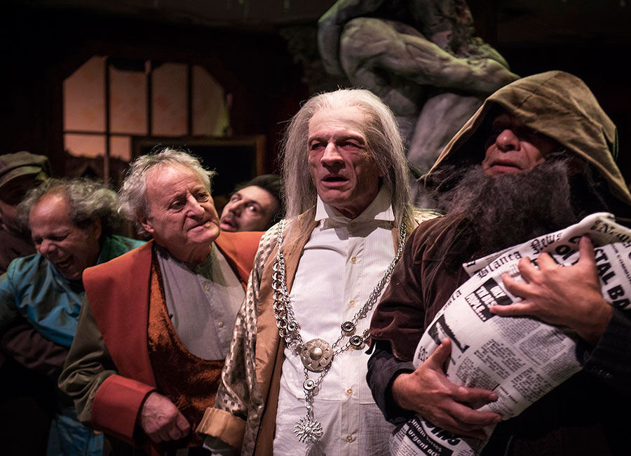 El buen teatro siempre remite al contexto actual. A partir de la epifanía de César en el primer acto de la obra original, empieza a gravitar la dramaturgia de Pompeyo Audivert, que versiona y actualiza la obra de Arlt. César niega la muerte del niño y revela un advenimiento que ocurrirá en el campo (nótese el cambio del desierto -en la obra original- por el campo -en la obra actual-), en un remoto tanque australiano junto a un molino rojo. Y hacia allí van en procesión, buscando en la pampa un molino rojo: César convertido en profeta, parte de su corte, parte de los sórdidos, parte del pueblo empobrecido, un sacerdote, y tres grotescos reyes magos para adorar a un mesías que nacerá en un tanque australiano. A esta cronista, la salida al campo para encontrar el salvador le parece una metáfora: es poner la esperanza en el modelo agro-exportador sostenido por las elites porteñas.