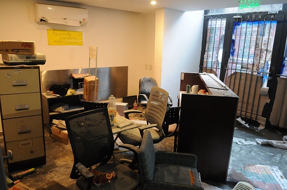 Télam 04/07/2015 Buenos Aires:Una patota de al menos 20 personas, encabezada por el empresario Mariano Martínez Rojas, ingresó esta madrugada a la redacción del semanario Tiempo Argentino y provocó destrozos en las instalaciones, además de robar documentación del área administrativa de la cooperativa que gestiona la publicación.Estado en quedó la redacción del diario luego del ataque. Foto: Gustavo Amarelle